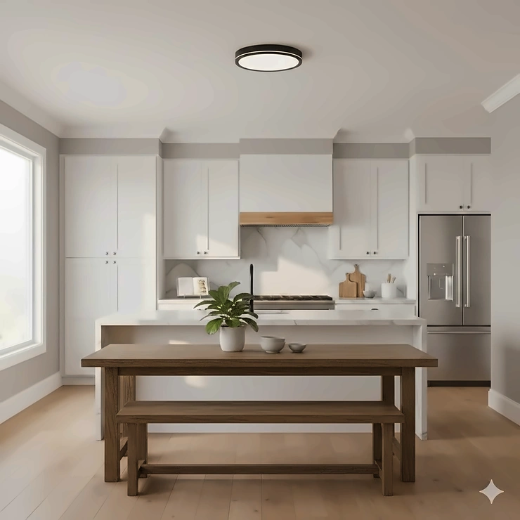 Kitchens with 7-8 foot ceilings need maximum light without sacrificing headroom. Semi-flush mounts hanging 6-8 inches down create claustrophobic feelings and head-bumping hazards.